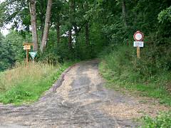 Sie kommen am ehemaligen Forsthaus vorbei. Anders als auf der Übersichtskarte dargestellt, benutzen Sie hier aber nicht den steil bergan führenden, etwas ungepflegten Waldweg. Bleiben Sie statt