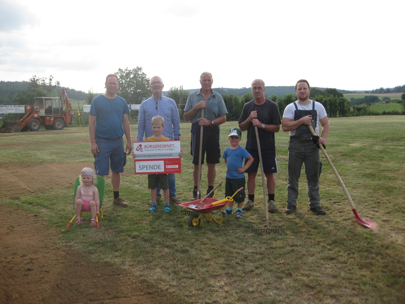 Mit über 70 Stunden ehrenamtlicher Eigenleistung erscheint unsere Rasenfläche bald in einem neuen schönen saftigen grün. Die Finanzierung des Projektes erfolgte aus der Ortsgemeinde Duppach, einer